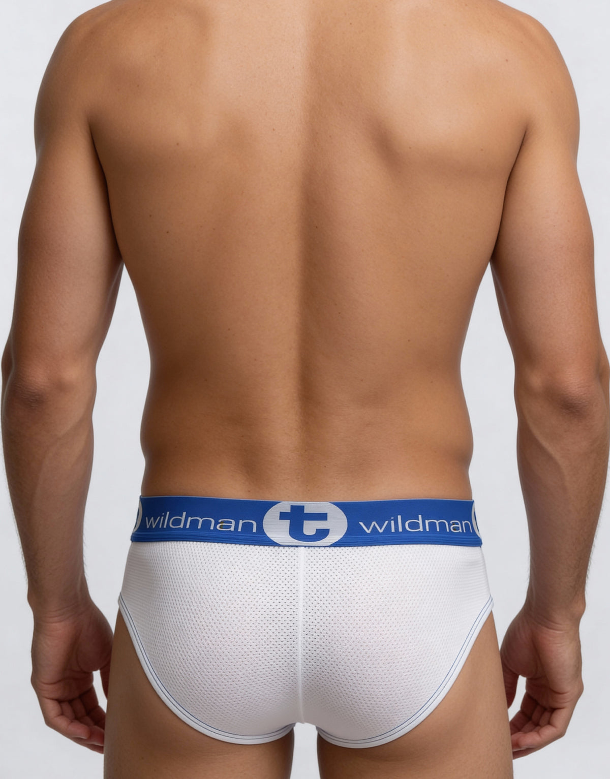 WildmanT Mesh Big Boy Pouch Brief with Stripe White and Blue