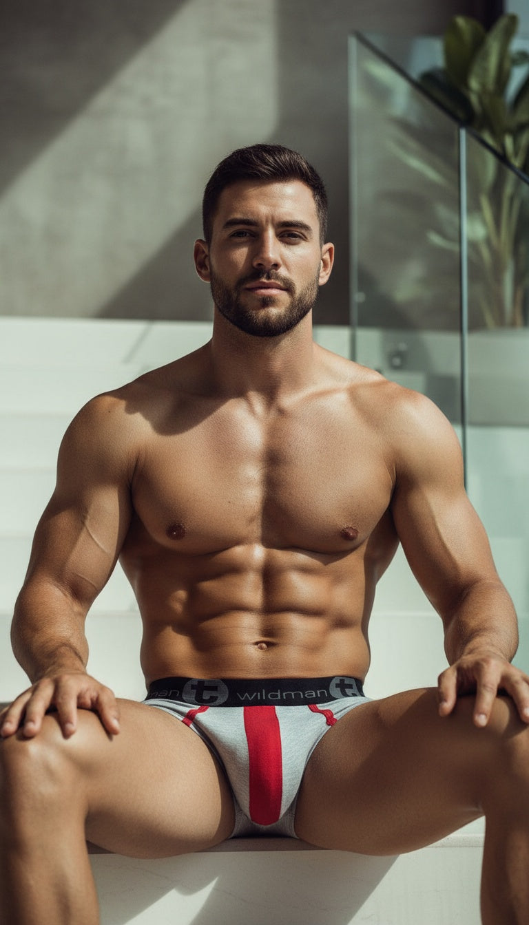 WildmanT Stretch Cotton Big Boy Pouch Brief Gray/Red